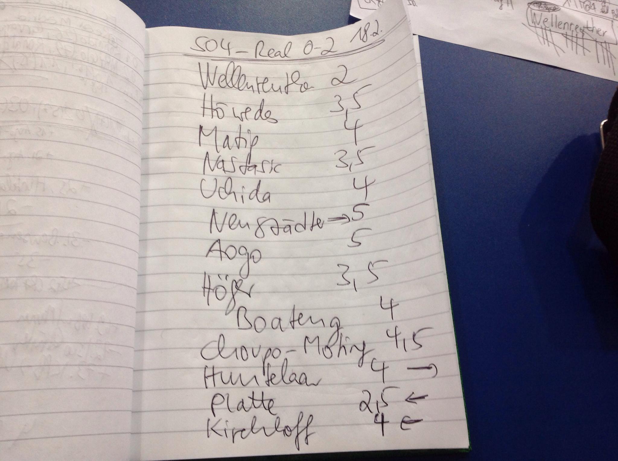 Uchida (2), Howedes (3+), Matip (3-), Nastasic (3), Aogo (4)