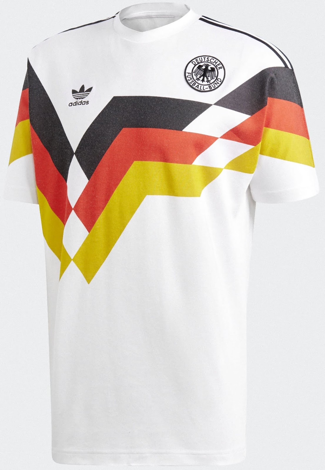「ドイツ代表のW杯での成功の歴史を称えるこのホームユニフォームは、過去の象徴的なデザインにオマージュを捧げています。繰り返し配置されたダイヤモンドとV字型の装飾は、歴代の名ユニフォーム――特に2014年大会の優勝時に着用したデザイン――から着想を得ています」とコメントしている。